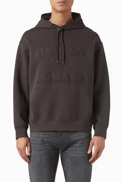 امبوريو ارماني كنزة بغطاء رأس وشعار الماركة حجم كبير قطن جيرسيه Image 1